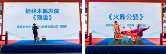 非遗互动表演区里,泉州提线木偶艺人的精准操控与“火鼎公婆”的诙谐演绎,吸引中外客商驻足。