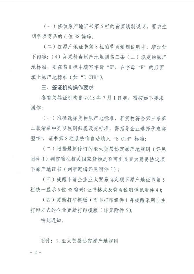 关于做好亚太贸易协定(修订版)项下原产地证书签发工作的通知