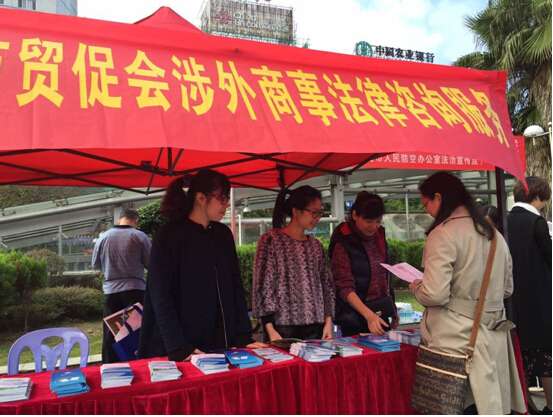 活动通过发放法制宣传资料、提供现场法律咨询等形式,向过往群众宣传外经贸法律法规、我会涉外商事法律服务内容和涉外经贸摩擦预警信息。