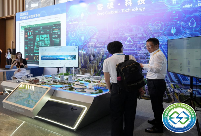 零碳科技展区,通过碳足迹智能管理系统、零碳园区动态沙盘、电池数字护照平台等核心展项,系统呈现从零碳园区规划、零碳生产流程到零碳产品认证的一体化解决方案。生动展现了我国在零碳领域的科技创新与产业融合成果,突显绿色科技在推动高质量发展、实现“双碳”目标中的关键作用。