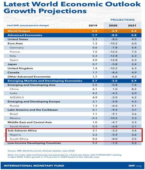 近期,多个国际组织相继下调撒哈拉以南非洲地区今年经济增长预期。国际货币基金组织在最新一期《撒哈拉以南非洲地区经济展望》报告中预测,今年该地区经济将萎缩3.2%,较今年4月份预测值下调1.6个百分点。IMF预计,地区内两大经济体尼日利亚和南非今年经济将分别萎缩5.4%和8%,分别较4月份预测值下调2个百分点和2.2个百分点。