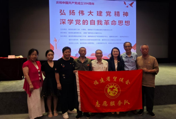 为热烈庆祝中国共产党成立104周年,深入学习贯彻党的创新理论,传承红色基因,凝聚奋进力量,7月1日,省贸促会机关党委联合鼓西街道西湖社区、福建省文艺音像出版社在西湖影剧院举办“弘扬伟大建党精神,深学党的自我革命思想”主题活动。社区党员群众、共建单位代表等150多人齐聚一堂,共赴一场铭记初心、砥砺前行的精神盛宴。
