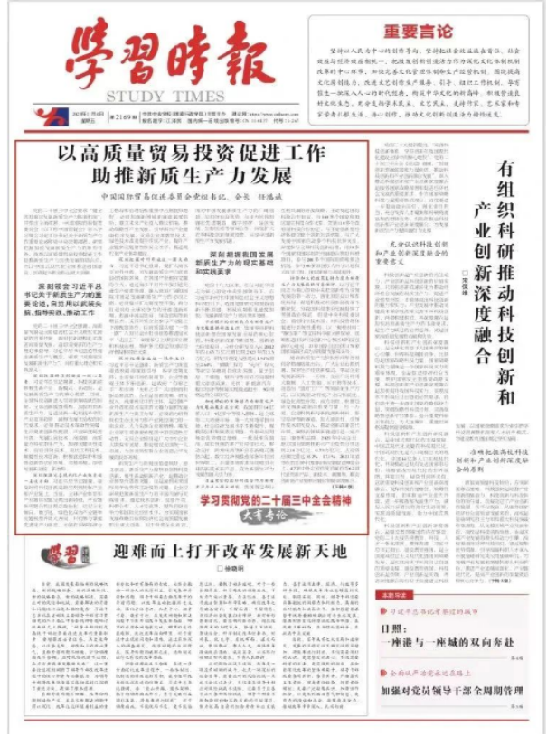 新质生产力的提出恰逢其时、意义深远。新质生产力聚焦原创性科技创新,催生新动能新产业,是推动企业转型升级的关键,也是赢得未来国际竞争优势和主动权的关键。企业应深刻把握新质生产力的丰富内涵与实践要求,通过技术创新、设备升级、科研合作、人才交流等,提升自身竞争力和国际化经营水平,为实现国家发展战略目标和经济社会高质量发展作出更大贡献。对于外资企业而言,面对中国发展新质生产力的广阔前景,应用好自身优势,与中方伙伴加强在先进制造、数字经济、绿色发展、生物医药等领域合作,持续扩大在华科技创新领域投资,共享中国新质生产力发展机遇。