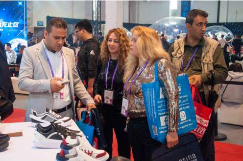境外采购商在“鞋博会”现场采购