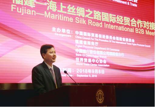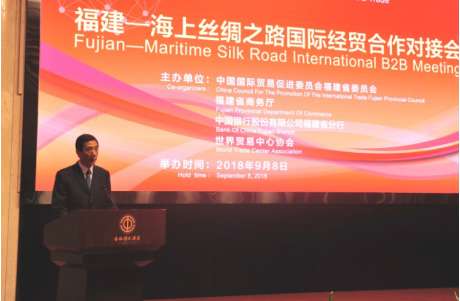 9月8日下午,省贸促会与省商务厅、中国银行福建省分行和世界贸易中心协会在厦门杏园湾大酒店联合主办了“第四届福建—海上丝绸之路国际经贸合作对接会”。省贸促会会长陈震、世界贸易中心协会审计委员会主席梅尔让、中国银行福建省分行行长杨展鹏出席了对接会并分别致辞。