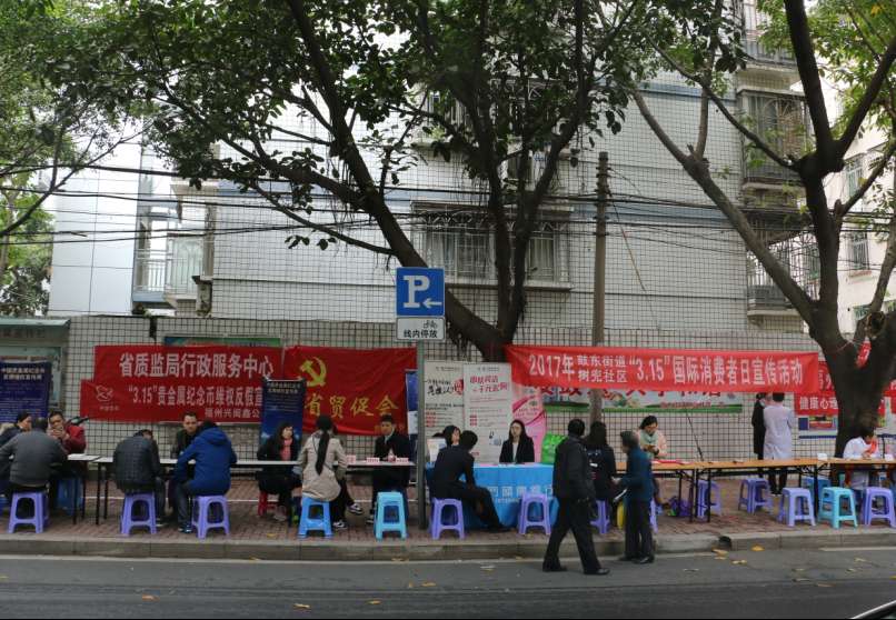 3月15日上午,省贸促会等8个单位30多位志愿者在鼓东街道树兜社区举办3•15国际消费者维权宣传活动。围绕食品安全知识、法律咨询、反假知识、医疗用药安全知识和健康义诊等一系列便民利民服务活动。