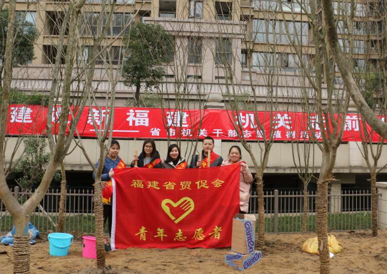 在第39届国际植树节到来之际,省贸促会积极响应省直文明办“建设新福建 机关走前头”号召,组织我会青年志愿者服务队来到闽江岸边开展义务植树活动,为我省“十三五”生态省建设再添新绿。