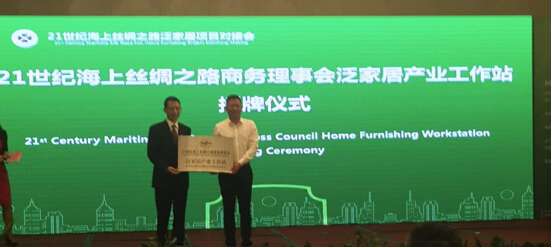 张秋会长为21世纪海上丝绸之路商务理事会泉州工作站、泛家居产业工作站的授牌仪式