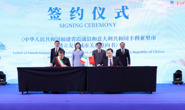 推介会上,还签订了《中华人民共和国福建省霞浦县和意大利共和国卡利亚里市建立友好城市关系意向书》《“中意霞浦”校园足球青训合作协议》等合作计划,佩斯卡拉世贸中心主席尼古拉·迪·梅森先生被授予“霞浦荣誉市民”称号,双方共同见证“卡利亚里足球学院分校”揭牌,深化双方在文旅、体育、经贸等方面的交流合作。
