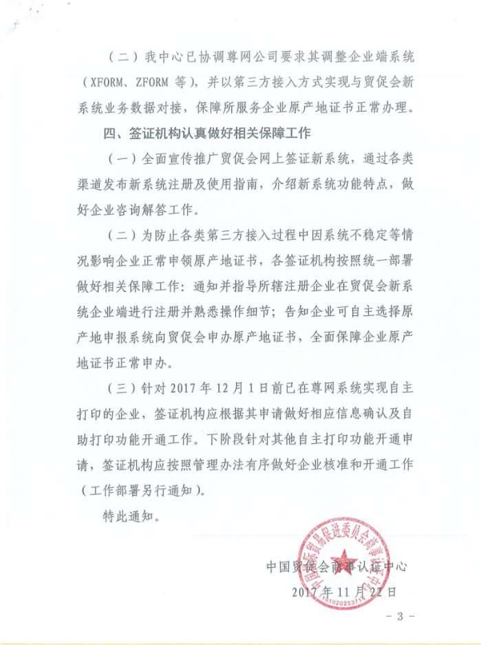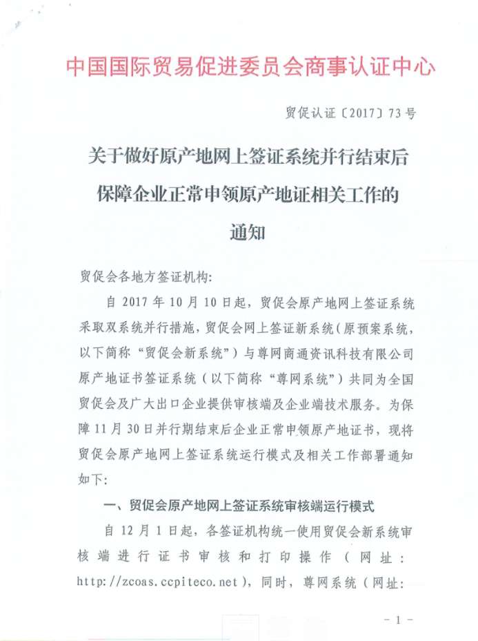 关于做好原产地网上签证系统并行结束后保障企业正常申领原产地证相关工作的通知