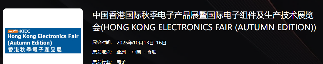 香港秋季电子产品展暨国际电子组件及生产技术展HK Electronics Fair(Autumn Edition)规模不断壮大,2020年的展会汇聚超过3,700家来自23个国家和地区的企业参展,刷新历届纪录。与香港秋季电子产品展同期举行的国际电子组件及生产技术展,是亚洲首屈一指的电子元件、组件、生产技术、太阳能光伏和显示技术展览会,由香港贸发局与慕尼黑国际博览亚洲有限九州酷游「中国」官方网站合办。两大展览相辅相成,为买家缔造更多机会采购相关产品及物色合作伙伴,发掘商机。